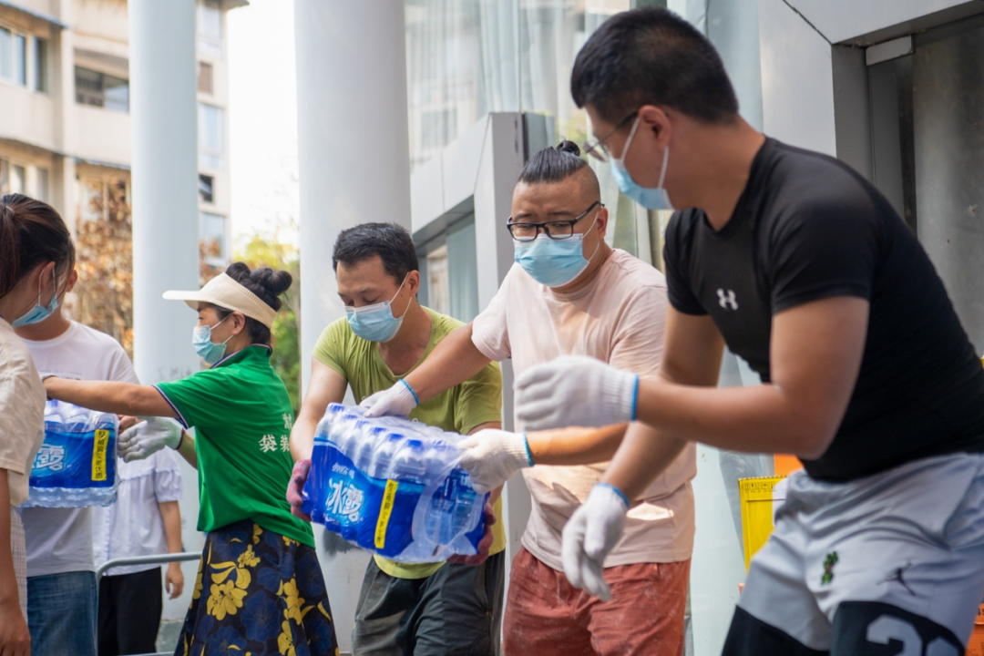 8月24日,志愿者在為救援人員運送飯菜。