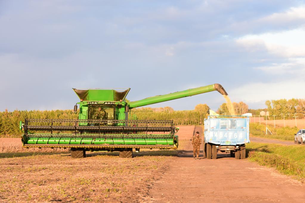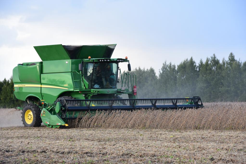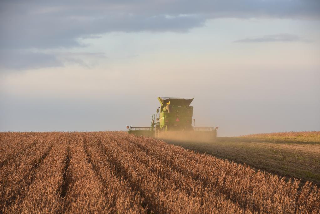 北大荒集團建設農場(chǎng)有限公司的大豆正在收獲。新華社記者 黃騰 攝