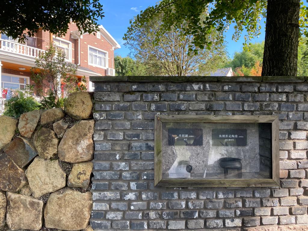 杭州市余杭區徑山鎮小古城村一處村民院落的院墻上,別出心裁地嵌入了文物仿制品。 新華社記者馬劍 攝