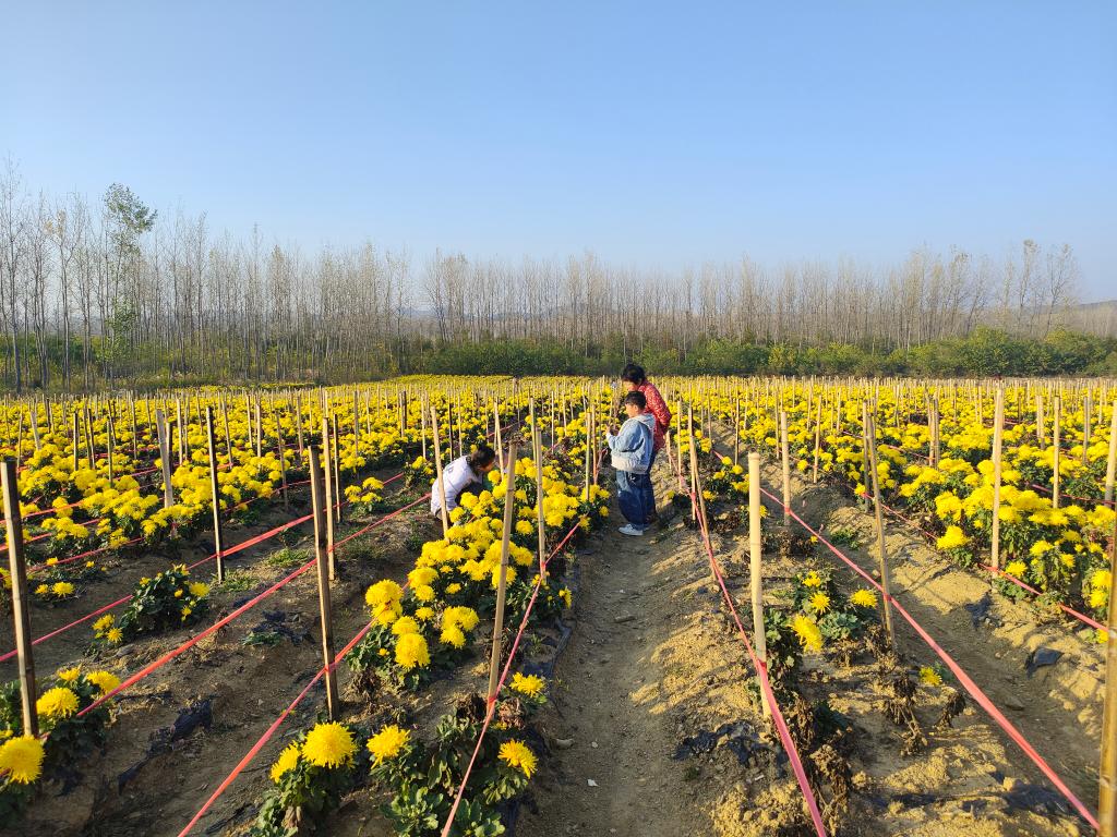 “你看,這已經(jīng)是第四茬了,一般能采摘五六茬。菊花可以藥食兩用,市場(chǎng)行情很好?!壁w志強指著(zhù)一株菊花介紹說(shuō)。去年他看中了卸店村的自然條件,流轉60畝土地,開(kāi)始嘗試種植3個(gè)品種的菊花。試種取得成效后,今年他將種植面積擴大到280畝,菊花品種增加到4個(gè)。