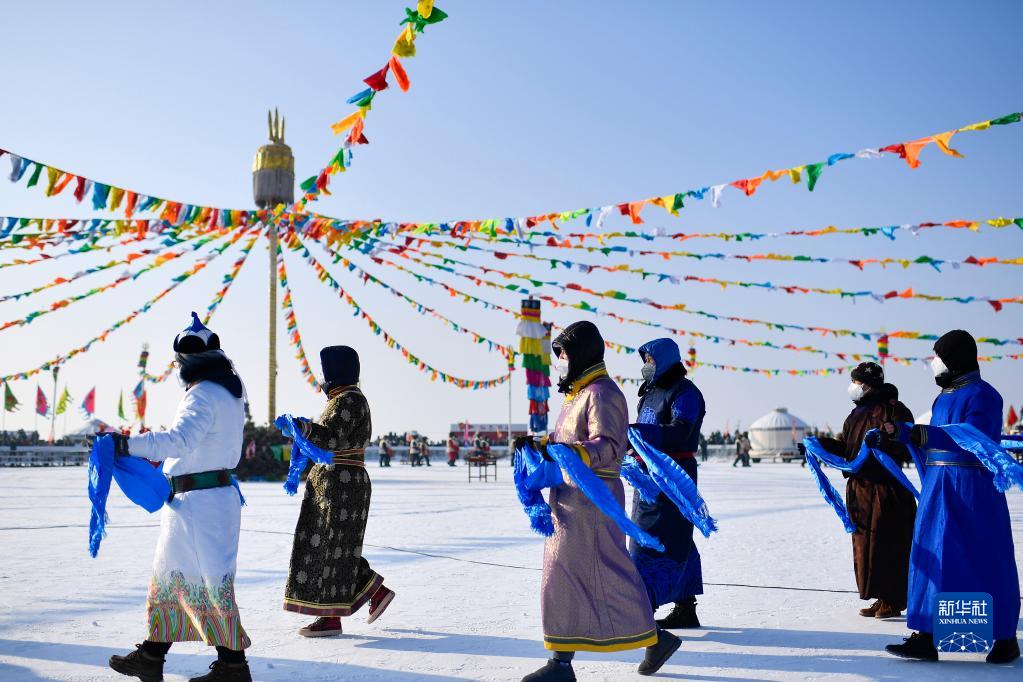12月28日拍攝的查干湖第二十一屆冬捕節祭湖醒網(wǎng)儀式現場(chǎng)。新華社記者 許暢 攝