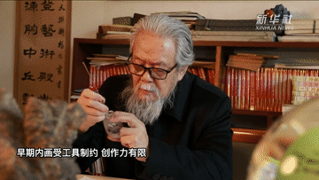中國工藝美術(shù)大師、魯派內畫(huà)傳承人張廣慶是內畫(huà)界三位亞太地區手工藝大師之一。在掌心大小的鼻煙壺里反向作畫(huà),難度可想而知。張廣慶不斷嘗試,將國畫(huà)的皴、擦、染、點(diǎn)、勾、撕等技法引入內畫(huà),在晶瑩剔透的小瓶?jì)壤L出氣象萬(wàn)千的畫(huà)面。