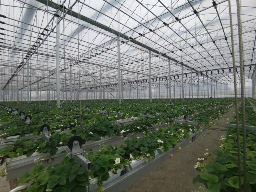 圖中塑料管為草莓大棚的水系統和加溫系統。(2月6日攝)新華社記者 鄭明鴻 攝
