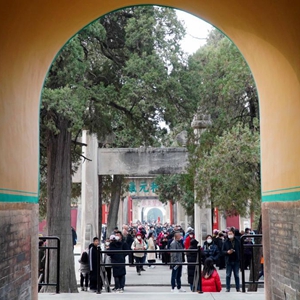 山東省曲阜市,游客在曲阜“三孔”旅游區游覽。新華社記者徐速繪 攝