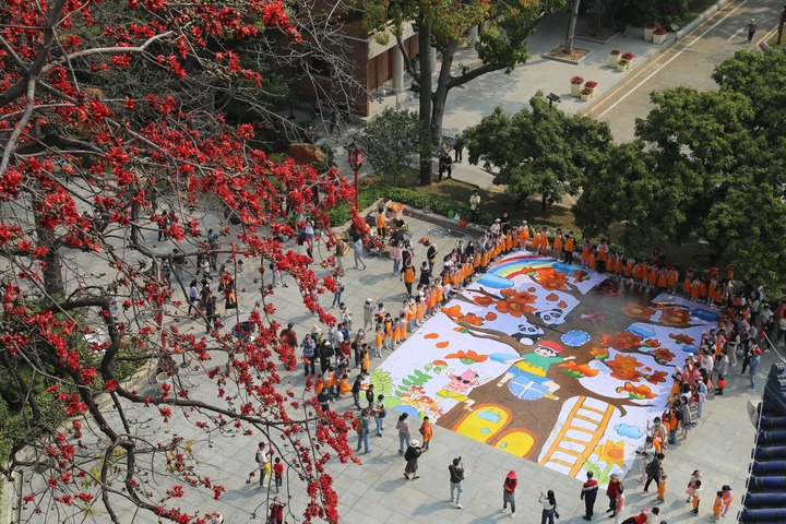 中山紀念堂350多歲的“木棉王”見(jiàn)證百童同繪英雄花。(受訪(fǎng)者供圖)