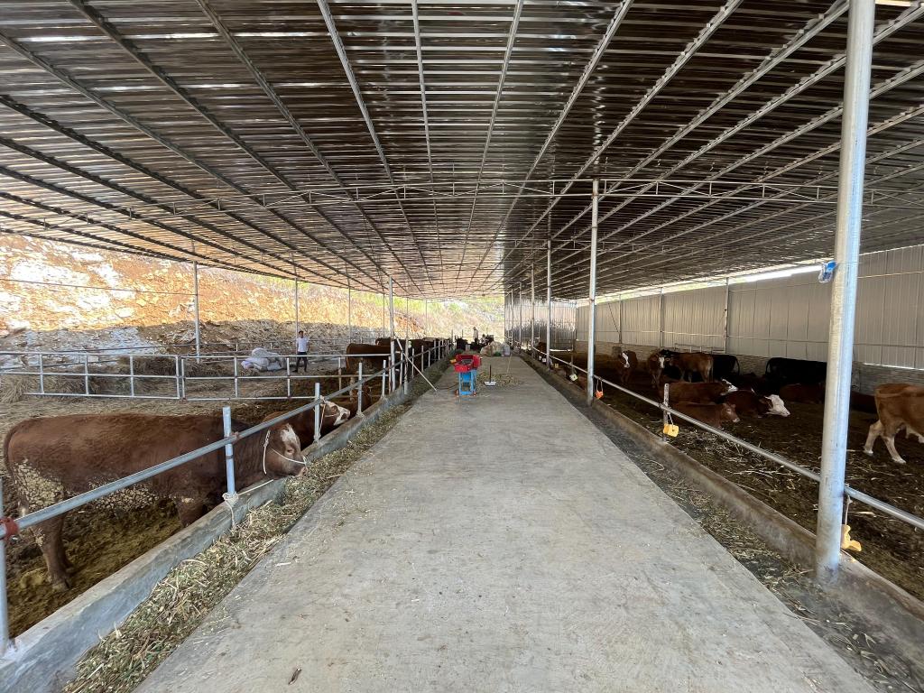 圖為2022年11月26日拍攝的貴州關(guān)嶺縣新鋪鎮臥龍村村民高志林的養牛場(chǎng)。新華社記者李驚亞 攝