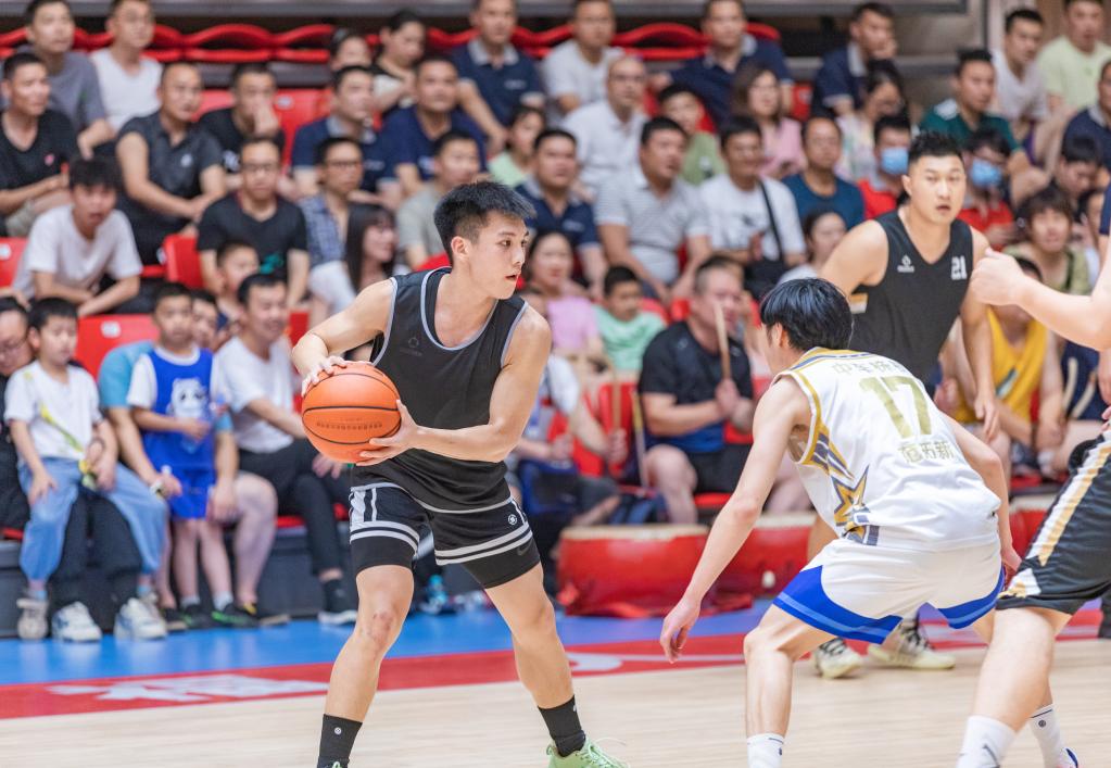 5月27日晚,億都控股的球員在比賽中扣籃。新華社記者 劉芳洲 攝