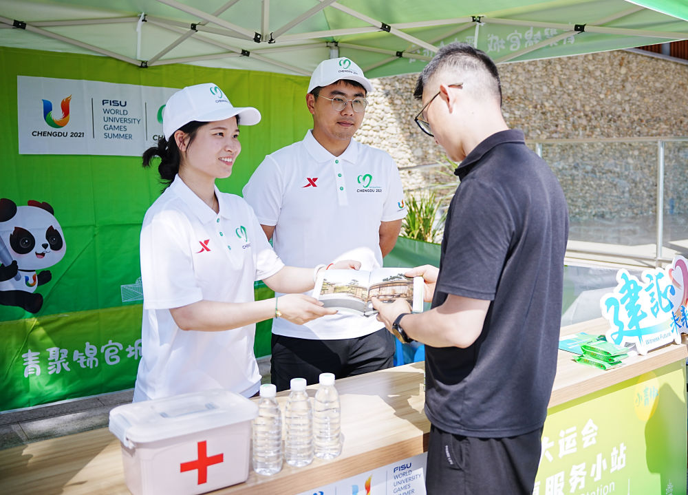 成都的大街小巷,現在隨處可見(jiàn)大運會(huì )元素和標識景觀(guān)。其中,志愿服務(wù)小站是一道獨特的風(fēng)景線(xiàn)。28歲的志愿者張思宇這幾天正為來(lái)往游客提供咨詢(xún)等服務(wù)。