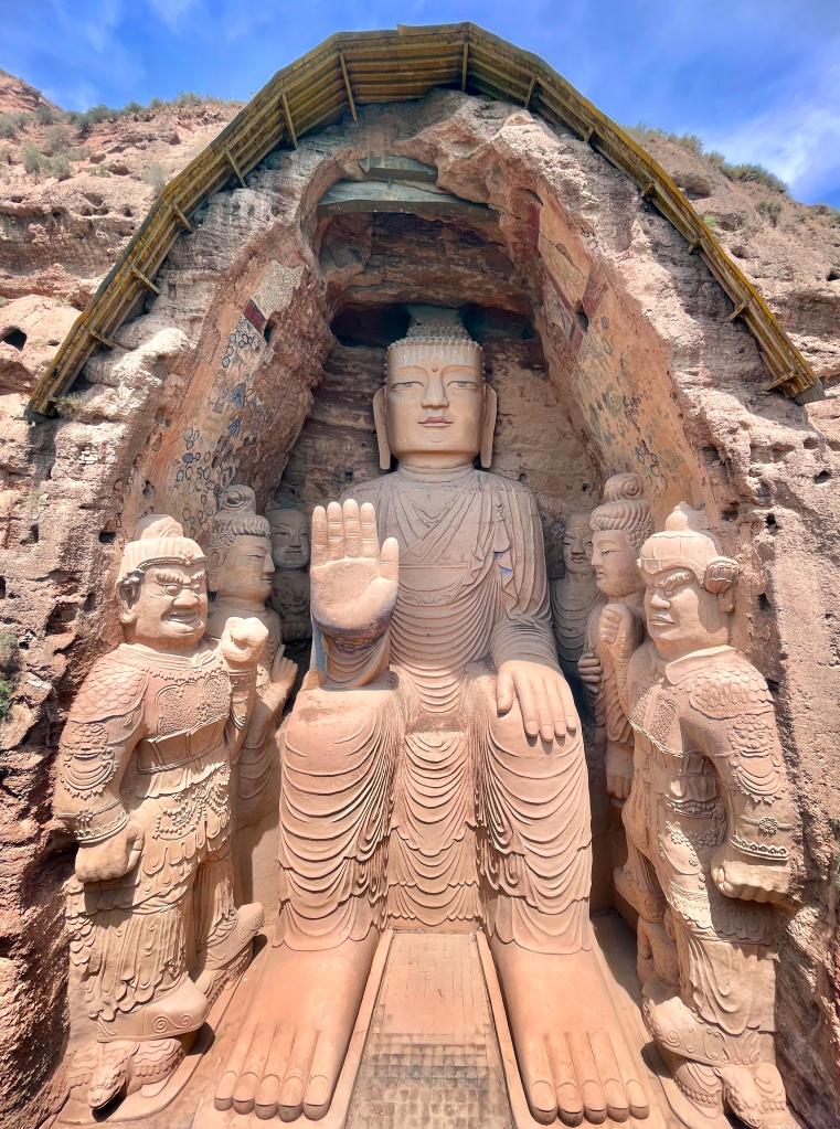 這是位于黃羊河水庫之濱的“石窟鼻祖”——甘肅省武威市天梯山石窟(2023年6月14日攝)。新華社記者 郭剛 攝