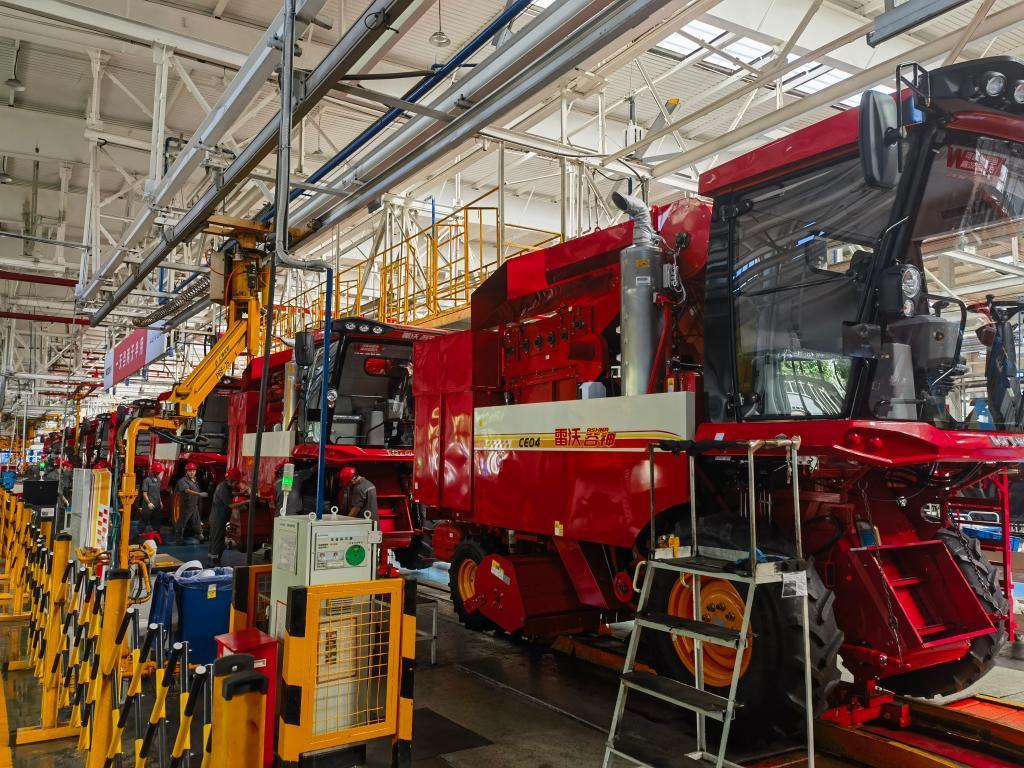在濰柴雷沃智慧農業(yè)科技股份有限公司拖拉機總裝二車(chē)間,生產(chǎn)線(xiàn)正滿(mǎn)負荷運轉。新華社記者王志 攝
