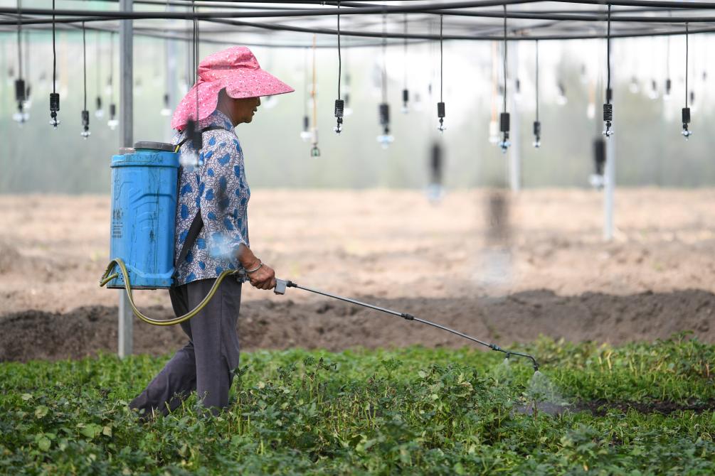 9月4日,工作人員在瀘定縣德威鎮馬鈴薯原原種繁育基地澆水。新華社記者 胥冰潔 攝