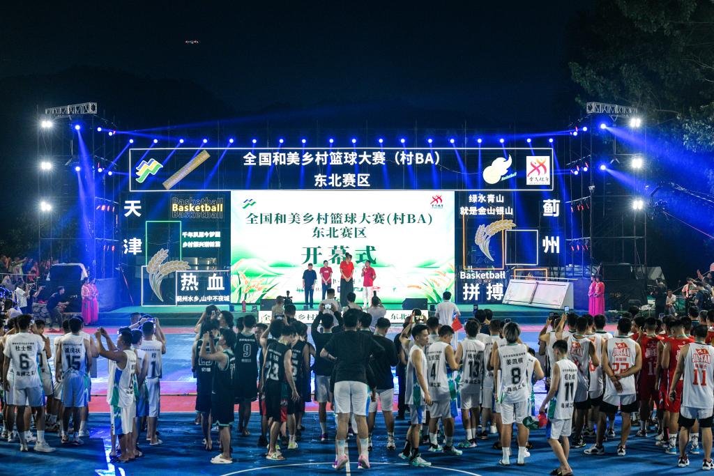 在郭家溝舉辦的全國和美鄉村籃球大賽(村BA)大區賽開(kāi)幕式。新華社發(fā)(王金一攝)