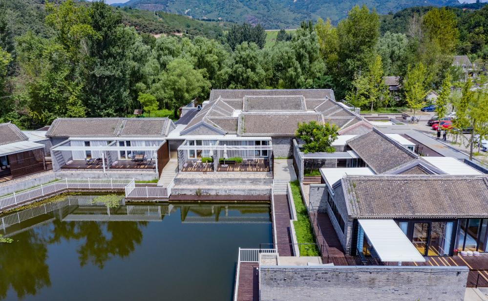 郭家溝精品農家樂(lè )效益提升傳到了別的村,一時(shí)間效仿者眾多。郭家溝又邁開(kāi)了步子,去北京找合作者,將洛奇溪堂鄉間酒店這一高端民宿引入村中。洛奇溪堂造型精美,風(fēng)格古樸,將村中山水之景融入設計之中,2018年開(kāi)業(yè)后,房間供不應求。