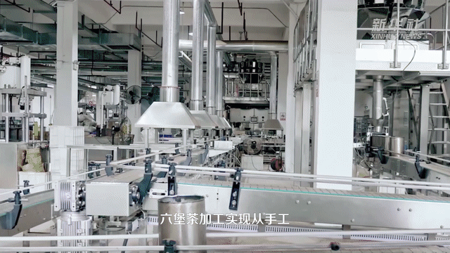 在更多茶企生產(chǎn)車(chē)間里,制茶過(guò)程由全自動(dòng)化生產(chǎn)線(xiàn)完成。茶葉在完全密封的管道里依次完成各道工序,最后從壓茶機中出來(lái),進(jìn)入最后的陳化階段。梧州中茶茶業(yè)有限公司總經(jīng)理張均偉說(shuō):“罐內發(fā)酵的六堡茶溫度濕度更易調控,茶葉品質(zhì)更穩定?!?/p>