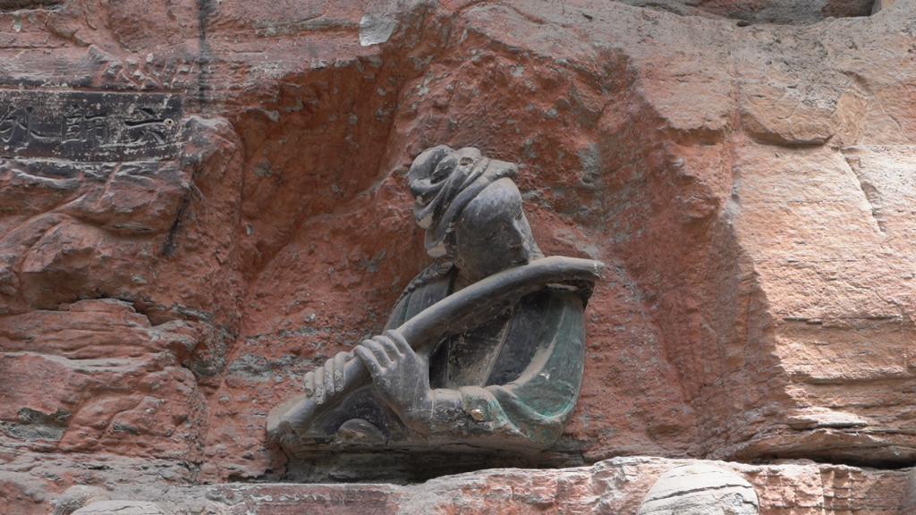 這是在大足石刻寶頂山景區拍攝的“吹笛女”造像。新華社記者 李前磊 攝