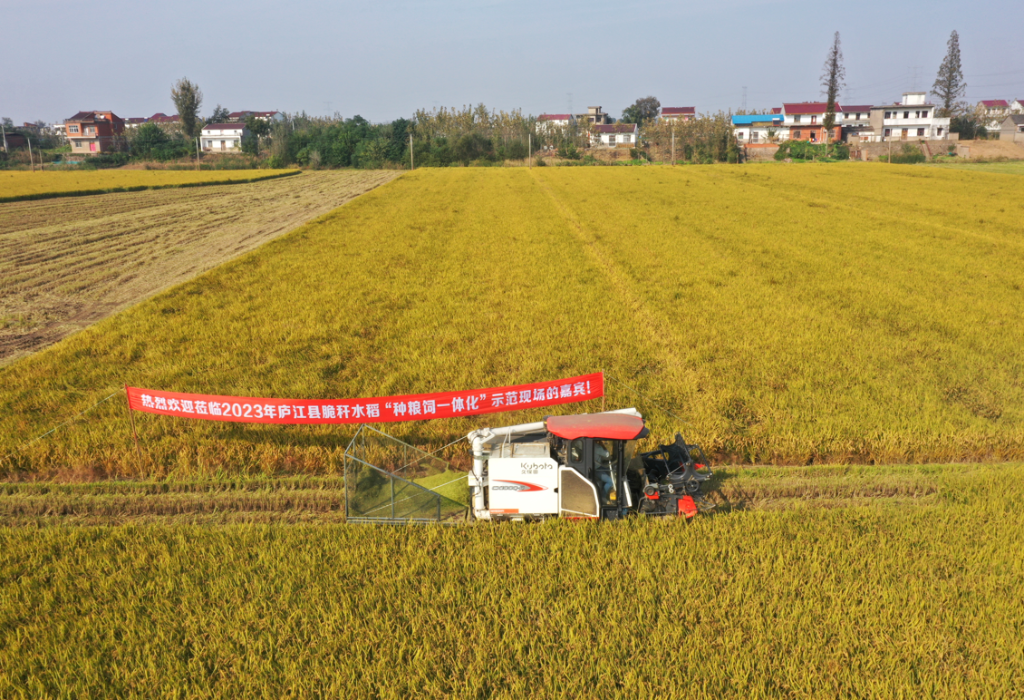 在合肥市廬江縣同大鎮連河村,千畝脆稈水稻示范田迎來(lái)豐收季。畝產(chǎn)650公斤稻谷加上畝產(chǎn)1.4噸的脆稈飼料,“一稻兩收、雙份收入”讓連河村的村民嘗到了科技豐產(chǎn)的甜頭。