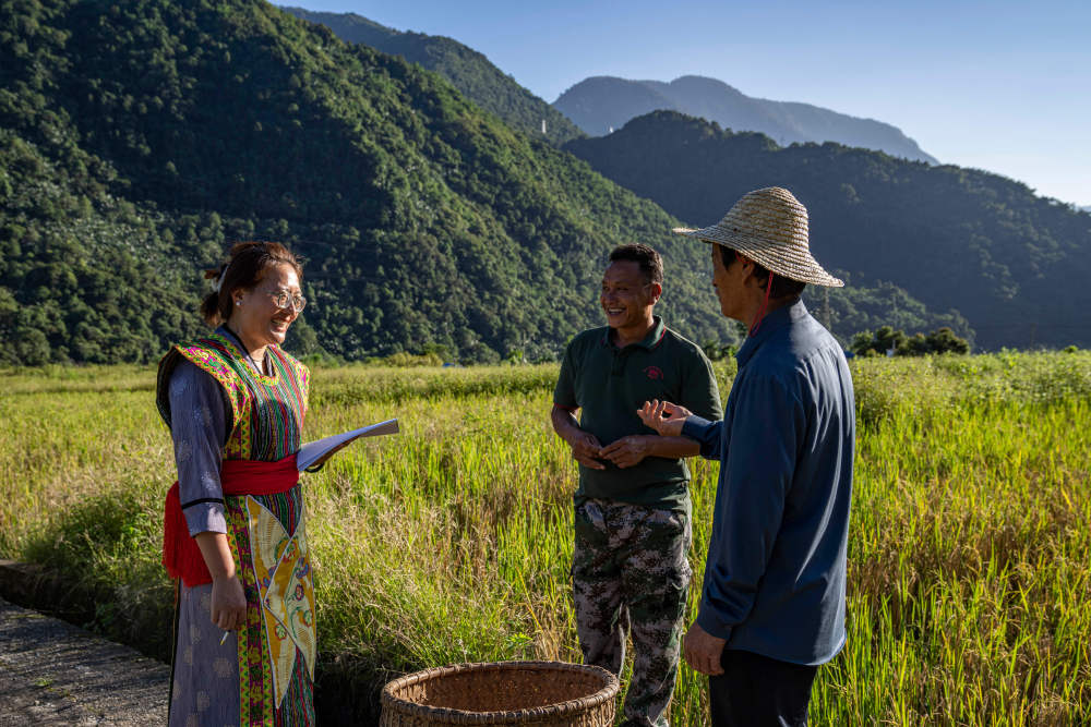 在墨脫縣德興鄉,鄉黨委副書(shū)記白瑪曲珍(左)在田間調研(2023年10月13日攝)。新華社記者 孫非 攝