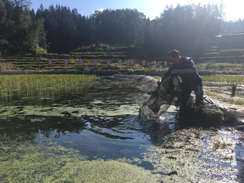 重慶酉陽(yáng)縣涂市鎮地靈村的村民在稻蟹田里撈蟹。(資料圖片)