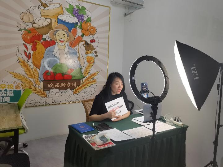 在金寨縣電商服務(wù)中心,村民正在進(jìn)行直播訓練。新華社記者水金辰 攝