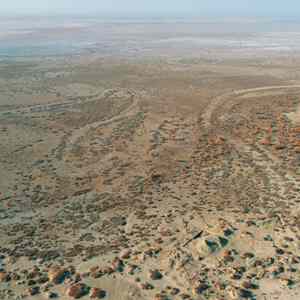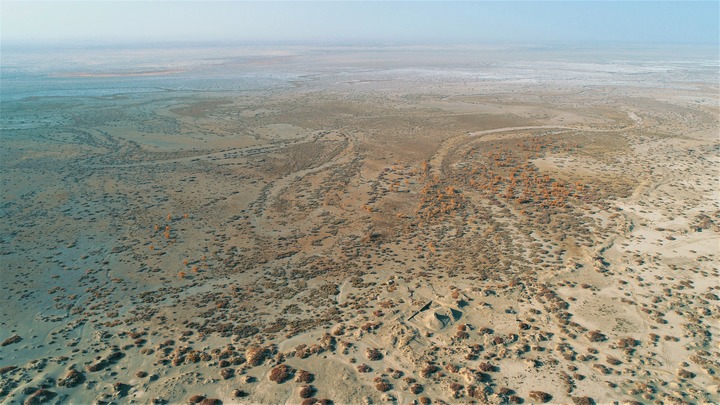 克亞克庫都克烽燧遺址地處荒漠(無(wú)人機照片)。(胡興軍 攝)