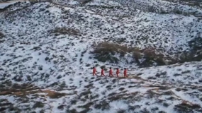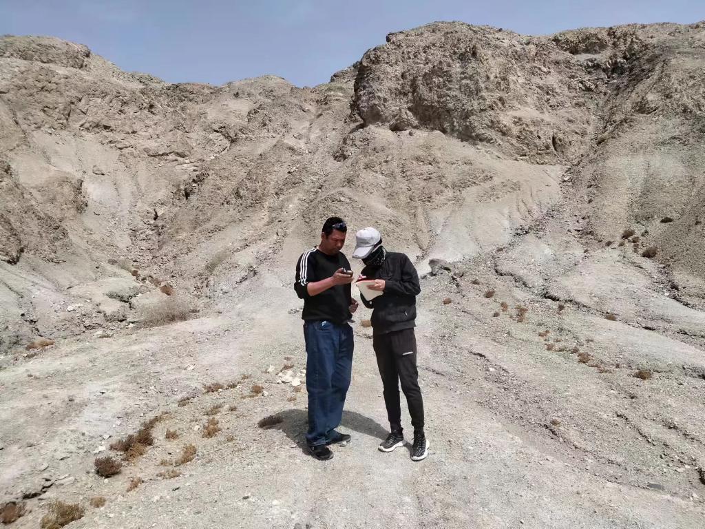 吾甫爾·庫爾班(左一)和同事在巡護烽燧途中。(受訪(fǎng)者供圖)