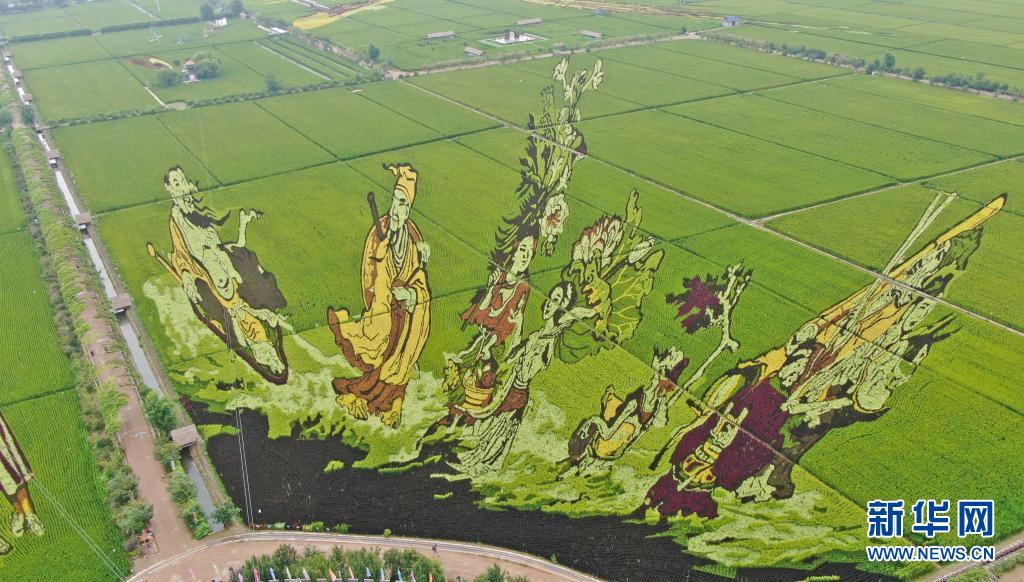 這是8月16日拍攝的稻田畫(huà)《八仙過(guò)?!罚o(wú)人機照片)。