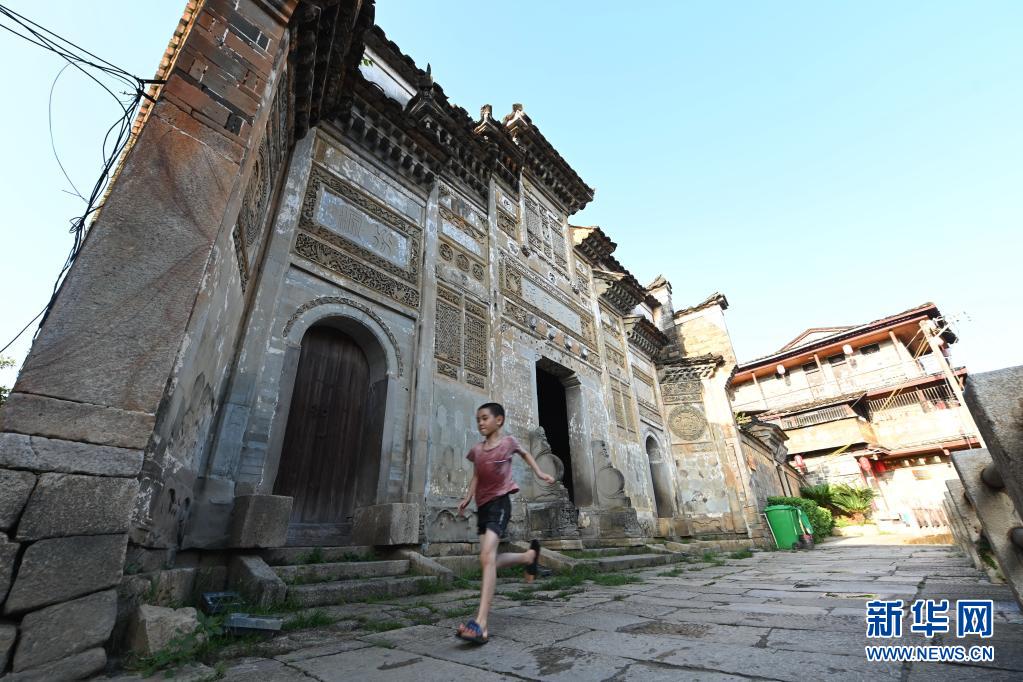 8月18日,小朋友從下梅村的鄒氏家祠前跑過(guò)。