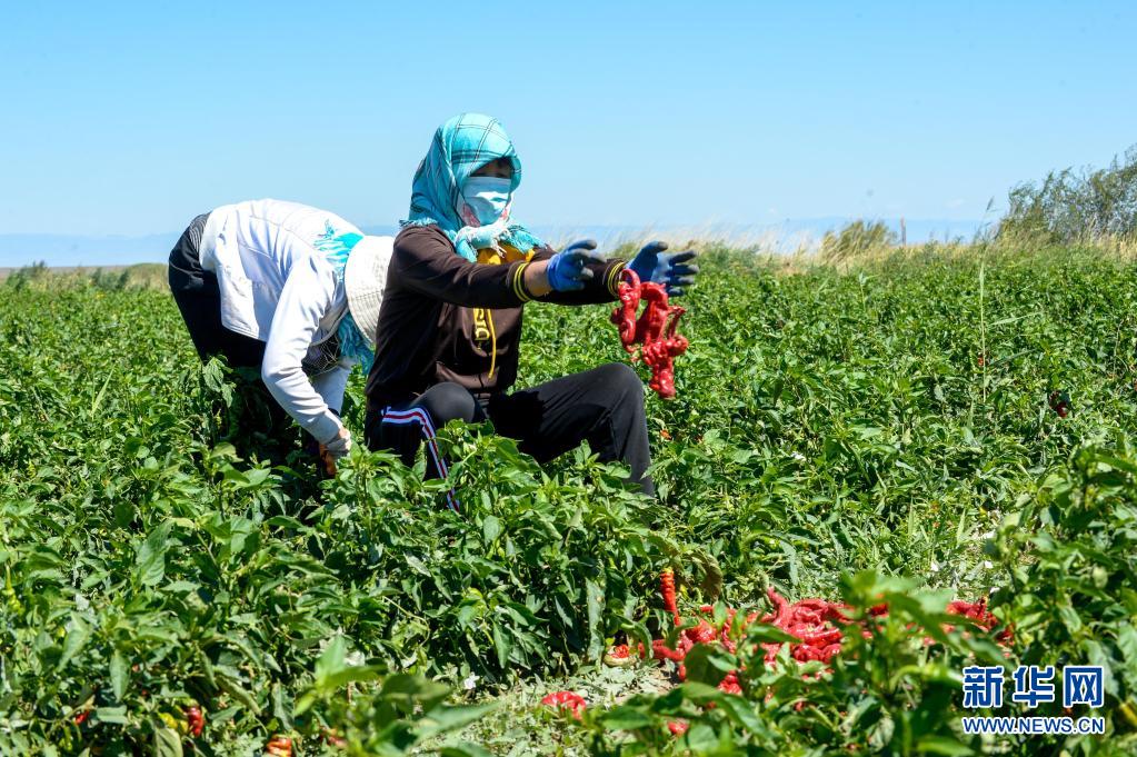 近日,新疆巴里坤哈薩克自治縣三塘湖鎮迎來(lái)辣椒豐收季,村民們搶抓晴好天氣采摘、晾曬辣椒。