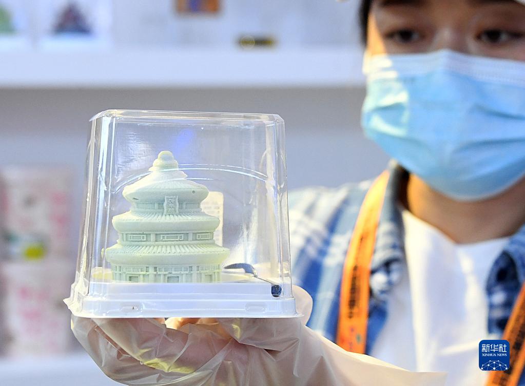 9月5日,工作人員在服貿會(huì )首鋼園區文旅服務(wù)展館展示天壇慕斯雪糕。