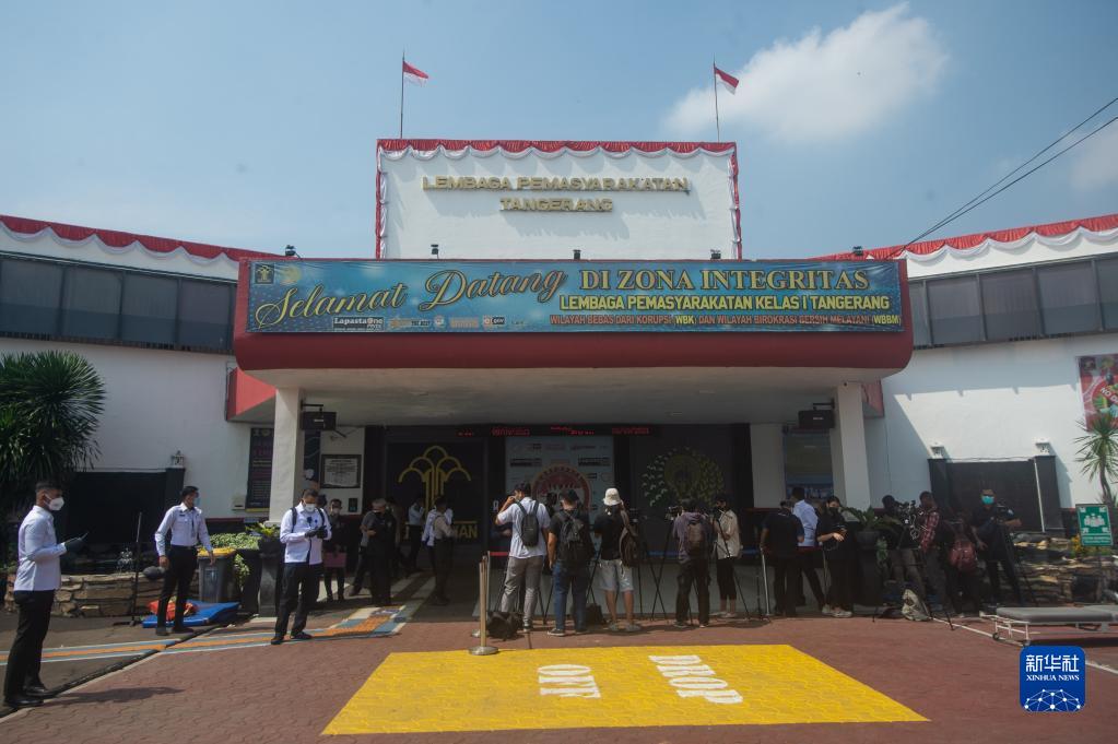 9月8日,媒體記者和工作人員聚集在印度尼西亞唐格朗一監獄門(mén)前。