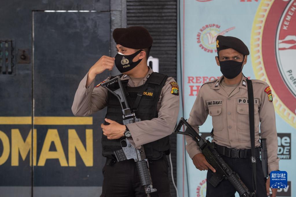 9月8日,警察在印度尼西亞唐格朗一監獄門(mén)前警戒。