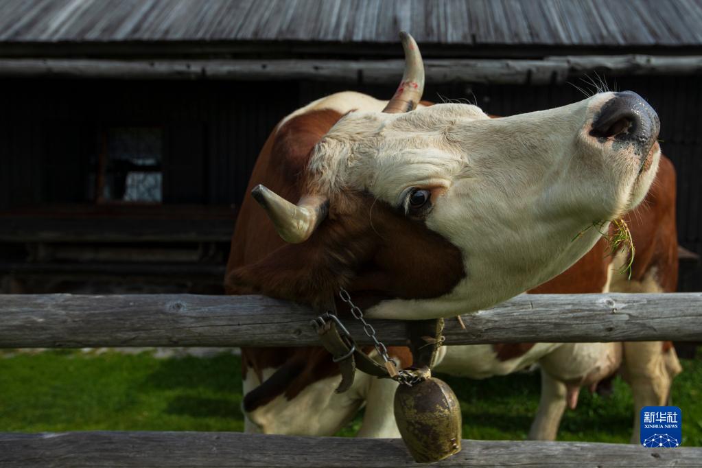 這是9月8日在斯洛文尼亞維利卡普拉尼那高地拍攝的牧民家中飼養的奶牛。