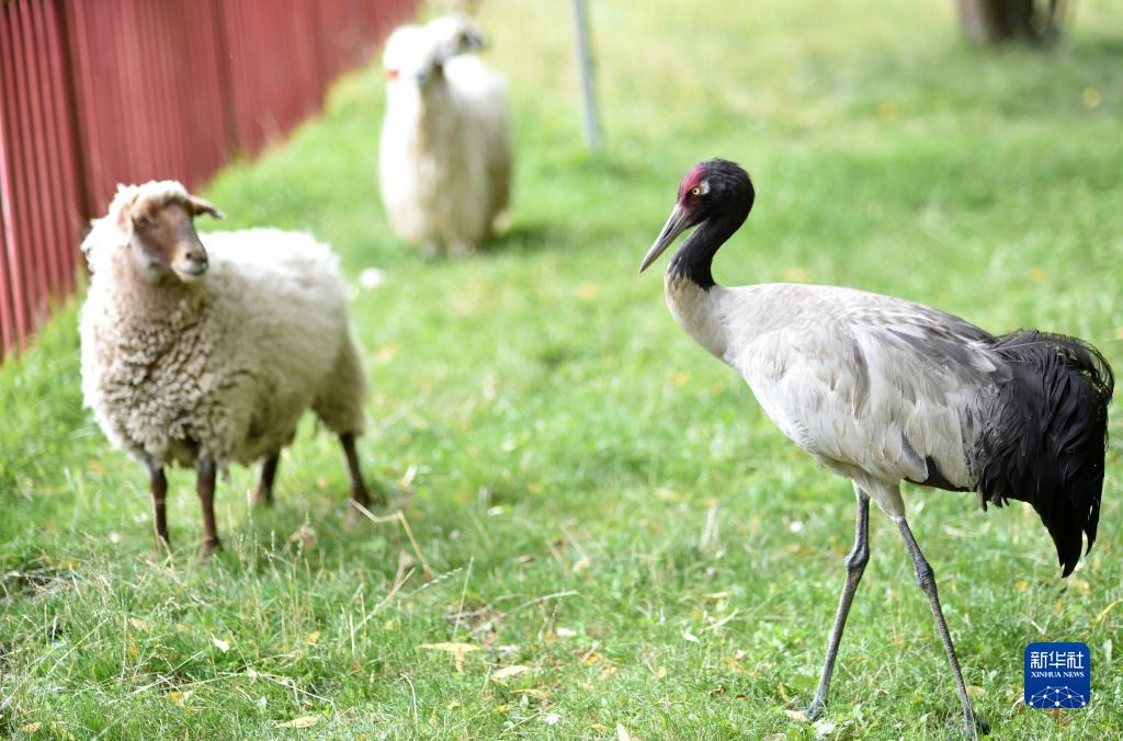 在西藏日喀則市扎什倫布寺院內,一只黑頸鶴與一群放生羊生活在一起,和睦相處。這只黑頸鶴曾因受傷無(wú)法遷徙,被附近的村民送到寺廟院里。如今,黑頸鶴儼然成了羊群的“頭羊”,被當地人稱(chēng)為“牧羊的鶴”。