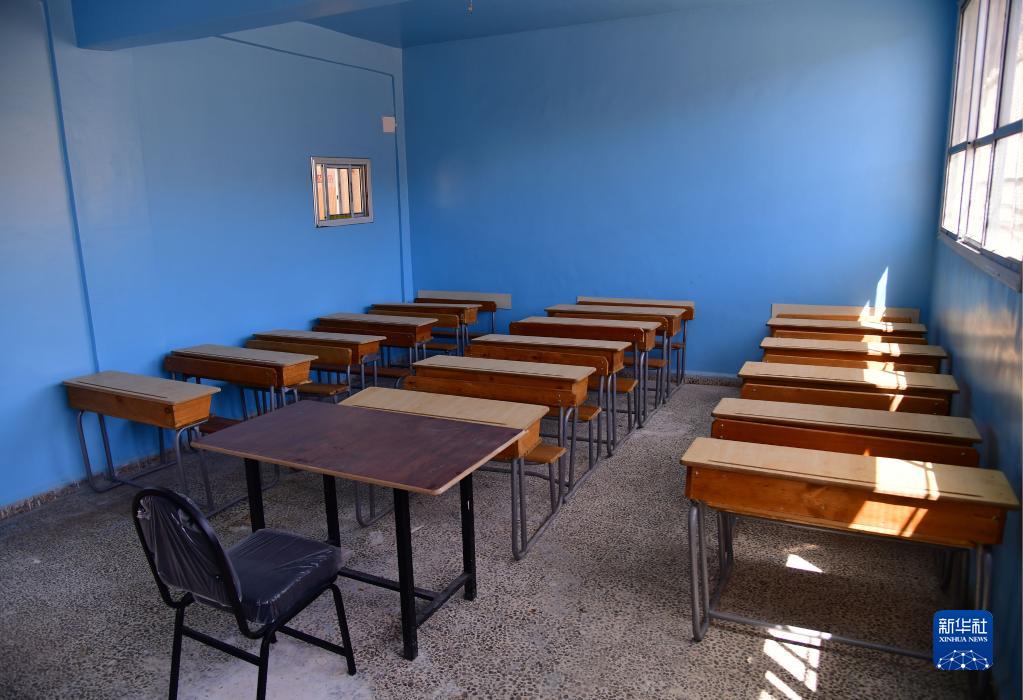 這是敘利亞大馬士革郊外達拉亞區一處正在整修的學(xué)校教室(9月13日攝)。