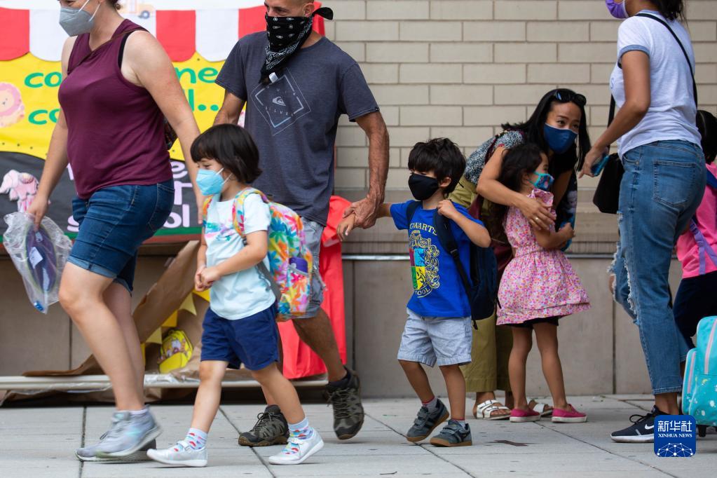 9月13日,家長(cháng)在美國紐約一所公立學(xué)校外接學(xué)生放學(xué)。當日,紐約市公立中小學(xué)新學(xué)年開(kāi)學(xué),并全面恢復在校教學(xué)。