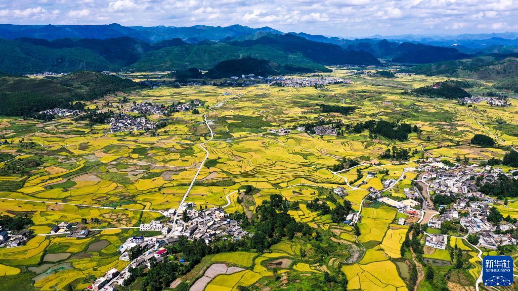 貴州省龍里縣灣灘河鎮的田園秋色(9月15日攝,無(wú)人機照片)。