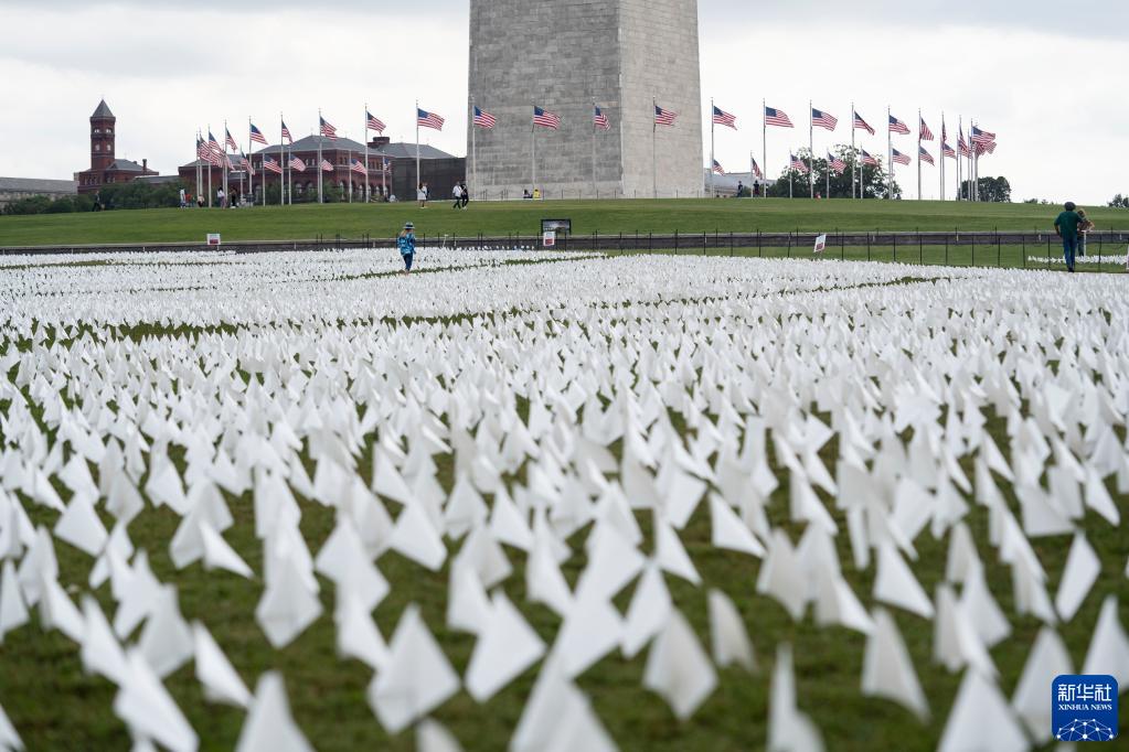 當日起至10月初,超過(guò)66萬(wàn)面白色旗幟擺放在華盛頓紀念碑附近悼念美國超過(guò)66萬(wàn)名新冠逝者。