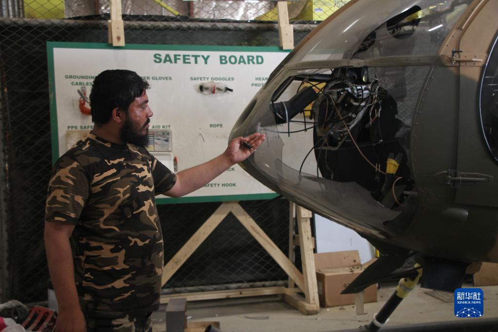 這是9月20日在阿富汗喀布爾機場(chǎng)拍攝的被毀壞的阿富汗空軍直升機。