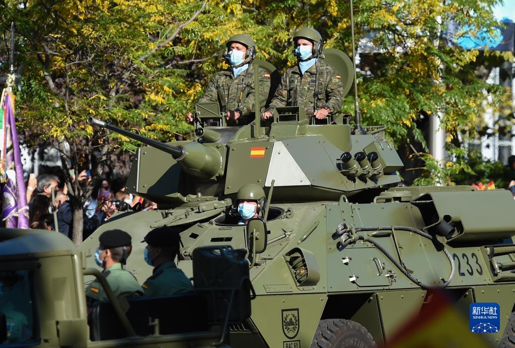 10月12日,軍人在西班牙首都馬德里參加國慶日慶?;顒?dòng)。