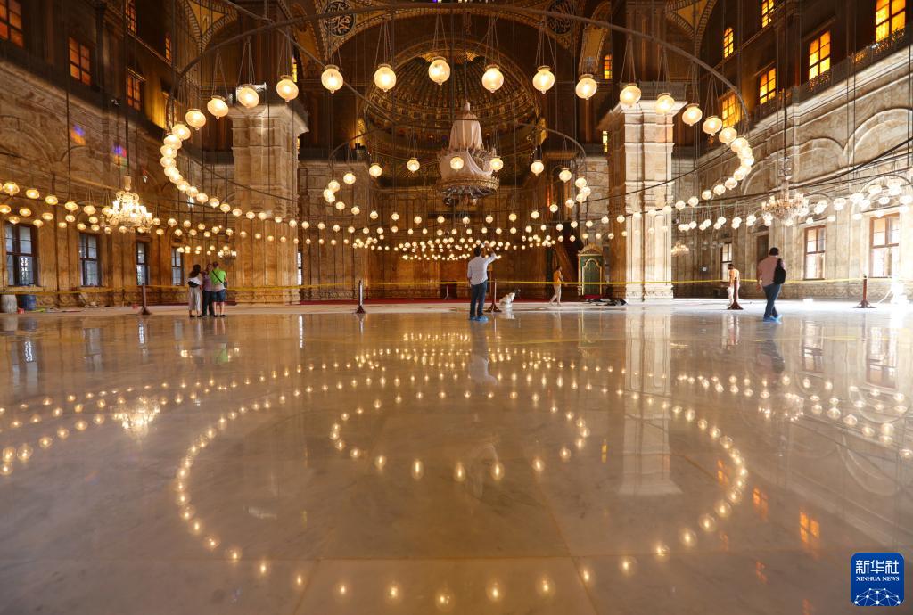 10月14日,游客在埃及首都開(kāi)羅薩拉丁城堡內的穆罕默德·阿里清真寺參觀(guān)。