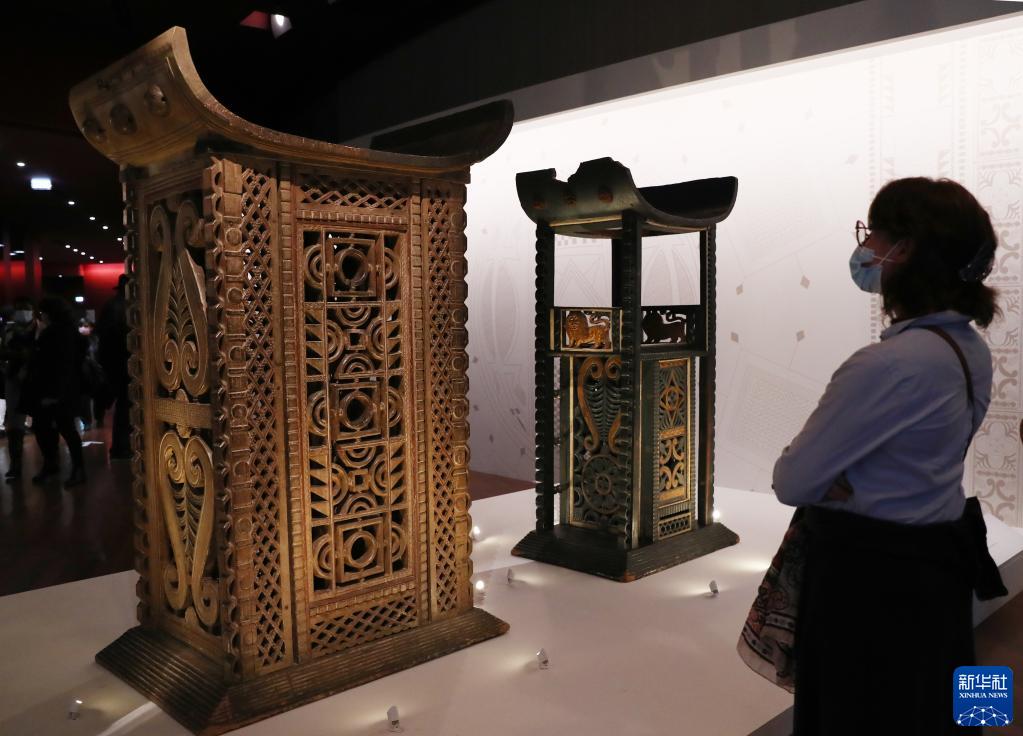 10月28日,一名女子在法國巴黎凱布朗利博物館參觀(guān)即將歸還貝寧的文物。