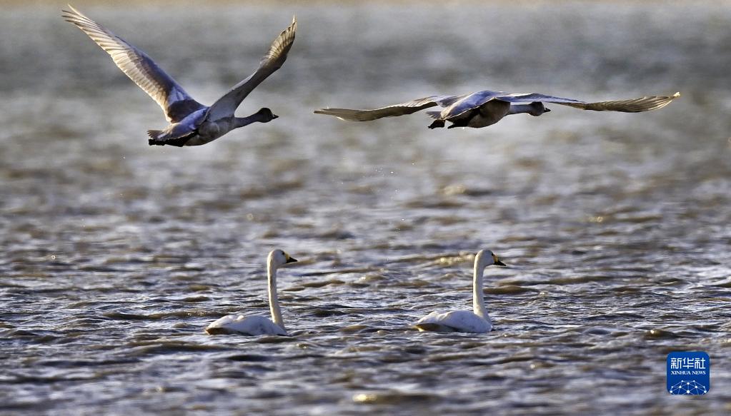 近日,陜西省榆林市榆陽(yáng)區河口水庫濕地迎來(lái)大批白天鵝、赤麻鴨等鳥(niǎo)類(lèi)。近年來(lái),位于毛烏素沙地南緣的榆陽(yáng)區采取退牧還濕、禁牧減畜等有效措施,加強生態(tài)環(huán)境保護。河口水庫濕地擁有大量淺灘、蘆葦,地勢平緩,水域寬廣,野生魚(yú)蝦資源豐富,已經(jīng)成為越冬候鳥(niǎo)途中覓食、停歇的理想之地。