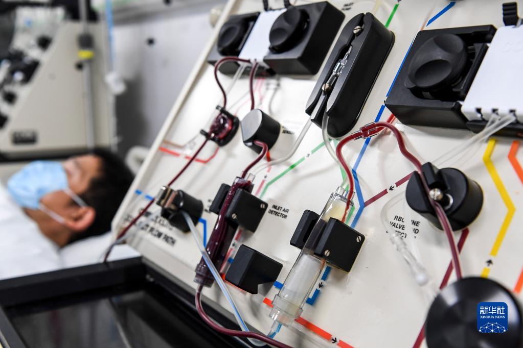 在廣西醫科大學(xué)第一附屬醫院,李醫生在捐獻自己的造血干細胞(2021年11月攝)。