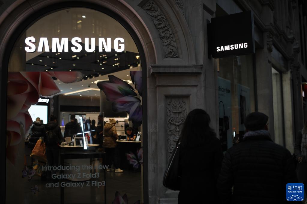 11月13日,人們走過(guò)英國倫敦的一家三星專(zhuān)賣(mài)店。