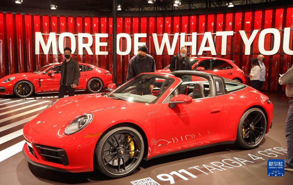 11月17日,人們在美國洛杉磯車(chē)展媒體預展上觀(guān)看參展汽車(chē)。