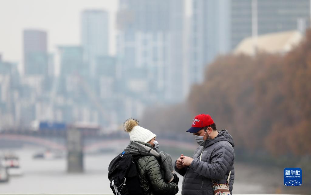 11月24日,人們在英國倫敦佩戴口罩出行。