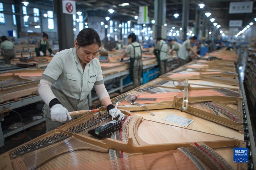 11月23日,工人在柏斯音樂(lè )集團宜昌鋼琴生產(chǎn)基地進(jìn)行鋼琴部件安裝。
