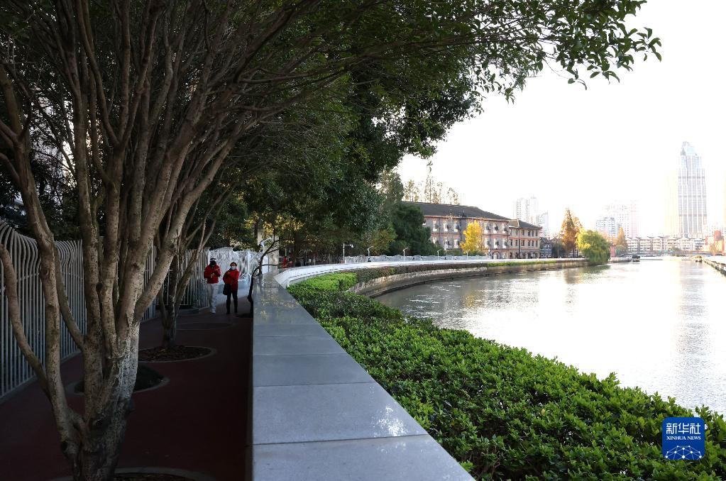 12月1日,游人在蘇州河畔的華東政法大學(xué)濱河步道休閑。