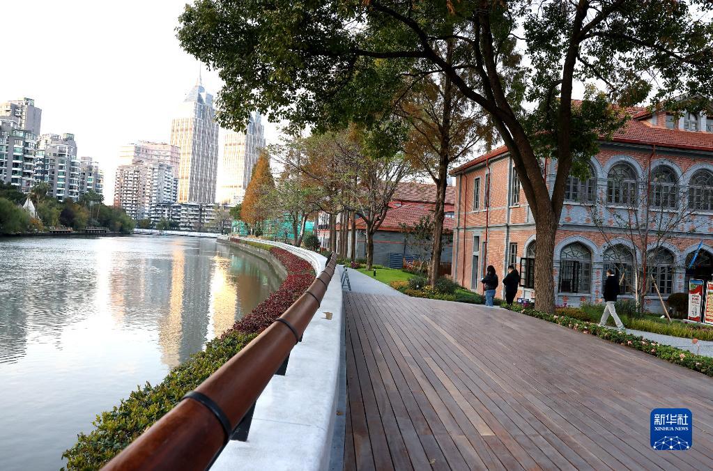12月1日,游人在蘇州河畔的華東政法大學(xué)濱河步道休閑。