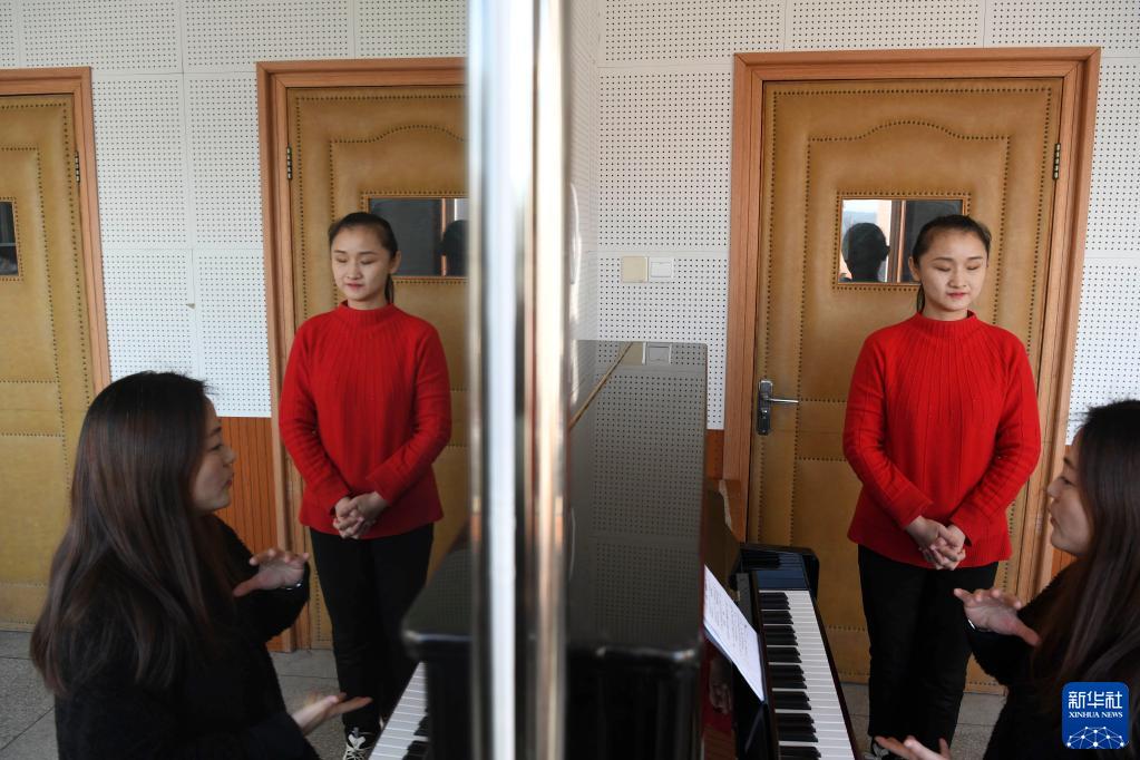 12月1日,在安慶師范大學(xué)音樂(lè )學(xué)院,張晨與老師在琴房?jì)冉涣鳌?/p>